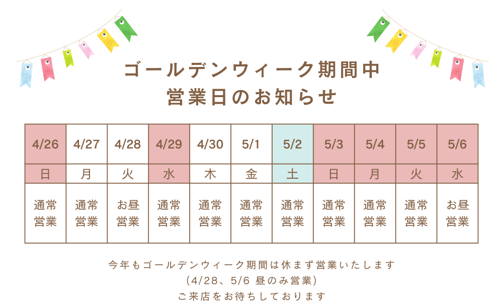 | 営業時間 | 月 | 火 | 水 | 木 | 金 | 土 | 日 |