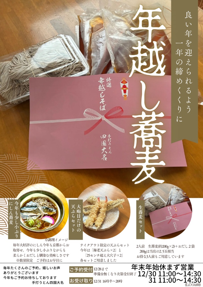 大晦日は四国大名のおいしいお蕎麦セットで年越しはいかがでしょうか?